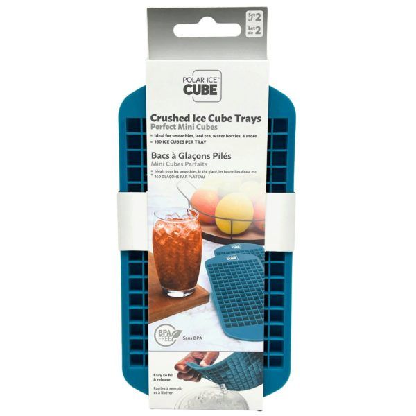 Keep your drinks perfectly chilled with the Polar Ice Set of 2 Crushed Ice Cube Trays in jade green. Each tray makes 160 mini cubes, ideal for smoothies, iced tea, cocktails, and water bottles. Made from 100% BPA-free silicone, these flexible trays make filling and releasing ice easy while ensuring long-lasting durability. They’re also dishwasher safe for effortless cleanup and can be used for more than just ice—perfect for making jello cubes, chocolates, or candy. Comes packaged together with a labeled paper sleeve.,Polar Ice Set of 2 Crushed Ice Cube Trays in Jade Green,