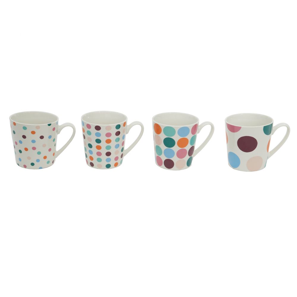 Enjoy your favorite hot beverage with a bold pop using this ceramic coffee mug. The polka dot print on the exterior of this mug lends an eye-catching and fun flair to your kitchen counter or coffee section of your kitchen. It holds up to 18oz of any beverage from coffee, tea, hot chocolate, and more. Made from sturdy ceramic, this coffee mug is built to last, with a wide handle at the side for easy gripping. Use this elaborate mug not only for coffee, but it can be used for eating noodles and mac cheese, or it can be a holder for brushes and pencils. Hand wash to clean.