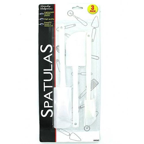 Perfect for mixing and frosting, this 3-piece Spatula Set comes with 3 different sized spatulas - small, medium and large. Measurements: 9 in small, 9 1/4 in medium and 9 1/2 in large. Comes packaged in a blister pack.