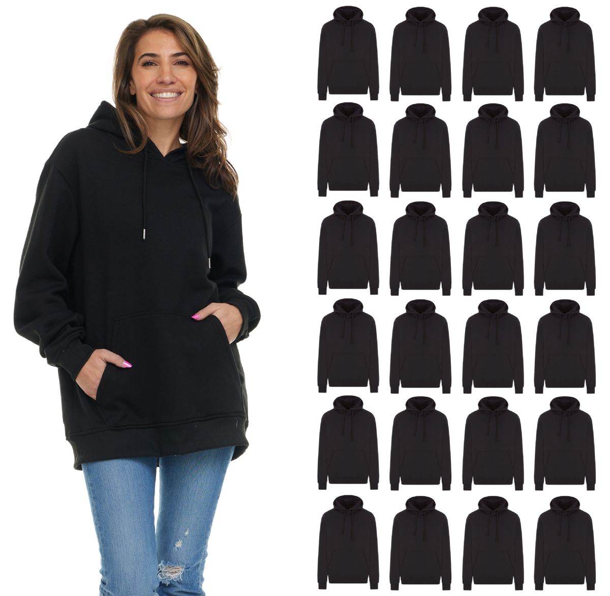 24 Bulk Women's Cotton Oversized Hoodie Sweat Shirt Black Size Medium