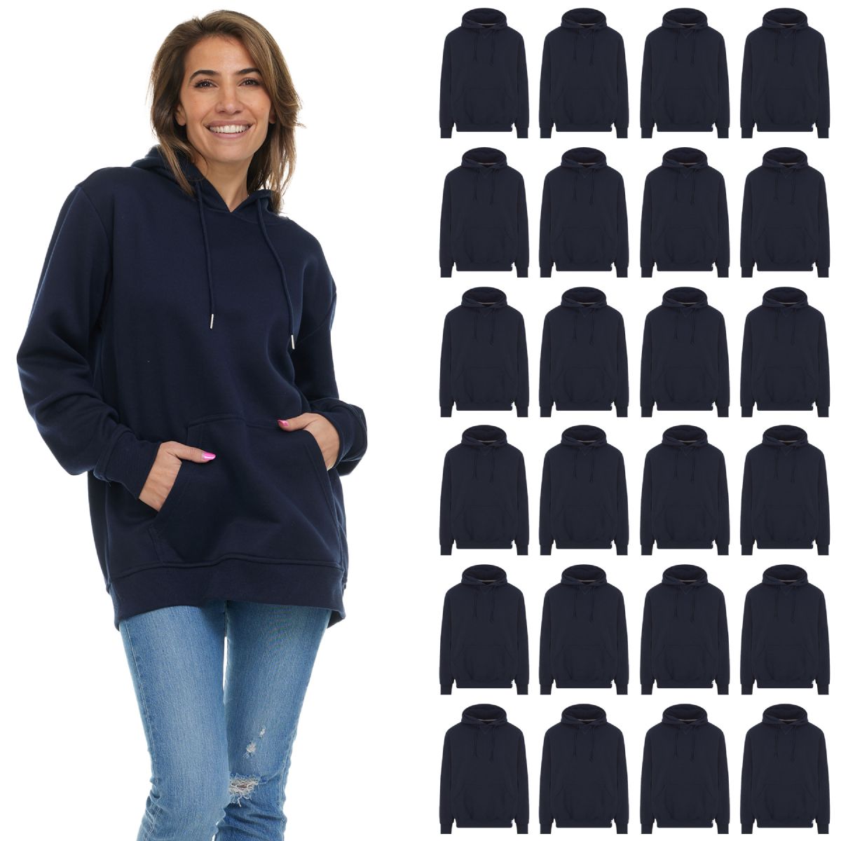 24 Bulk Women's Cotton Oversized Hoodie Sweat Shirt Navy Size Small