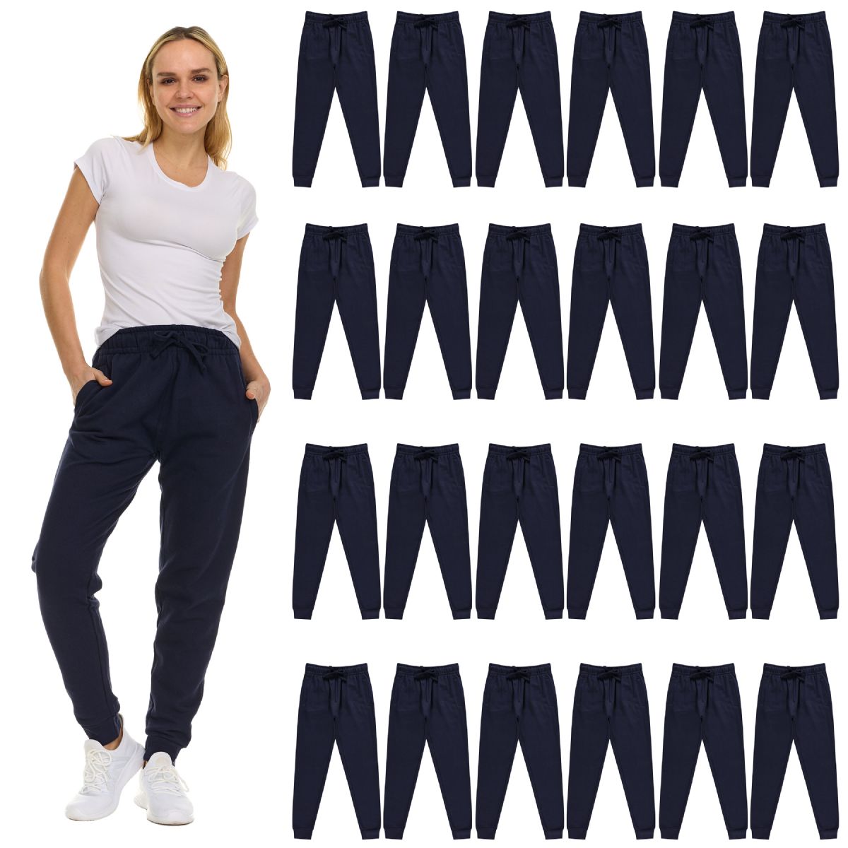 24 Bulk Womens Fleece Lined Jogger With Pocket In Navy Size Small