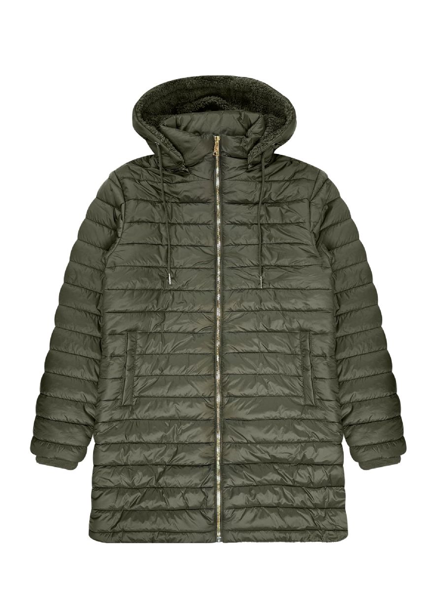 24 Bulk Womens Longline Hooded Puffer Jacket With Sherpa Lining In Army Green Assorted S-2xl