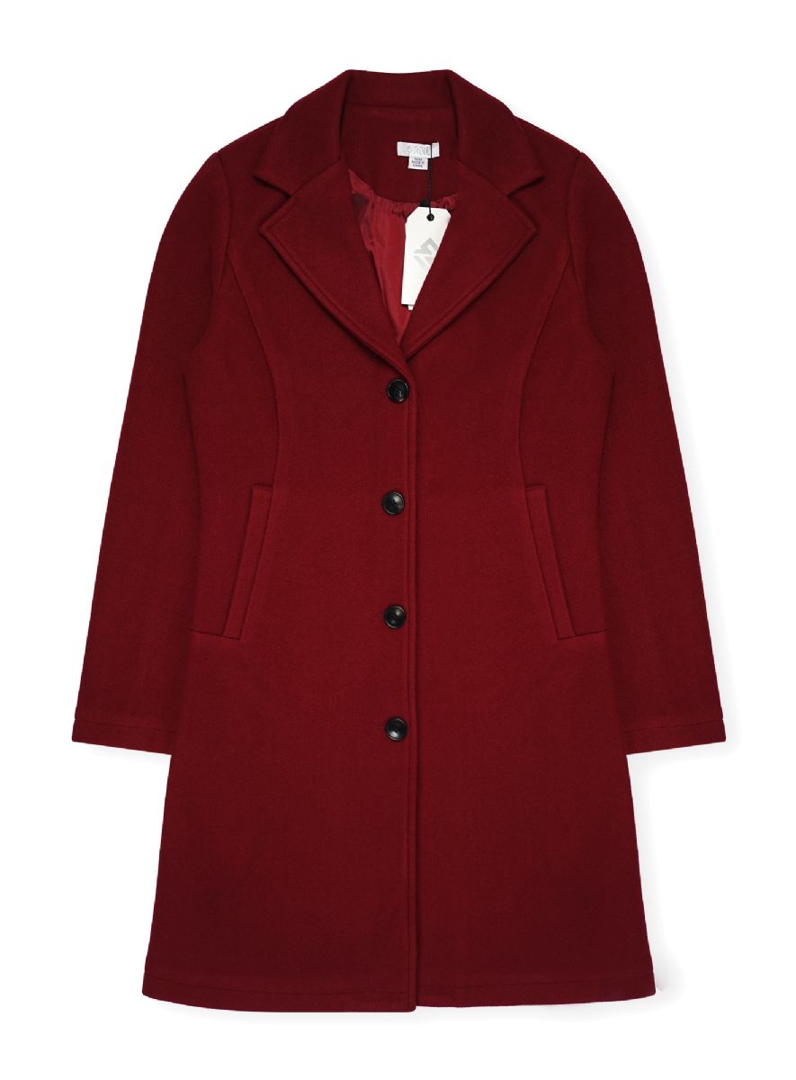 24 Bulk Womens Midi Wool Coat In Burgundy Assorted Sizes S-xl