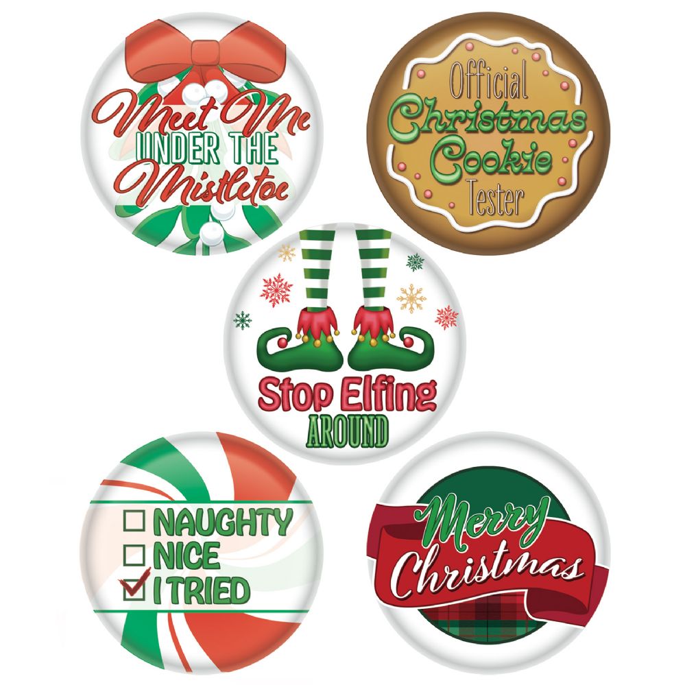 These Christmas party buttons are designed to add festive flair to outfits, perfect for holiday celebrations, parties, or winter-themed events.