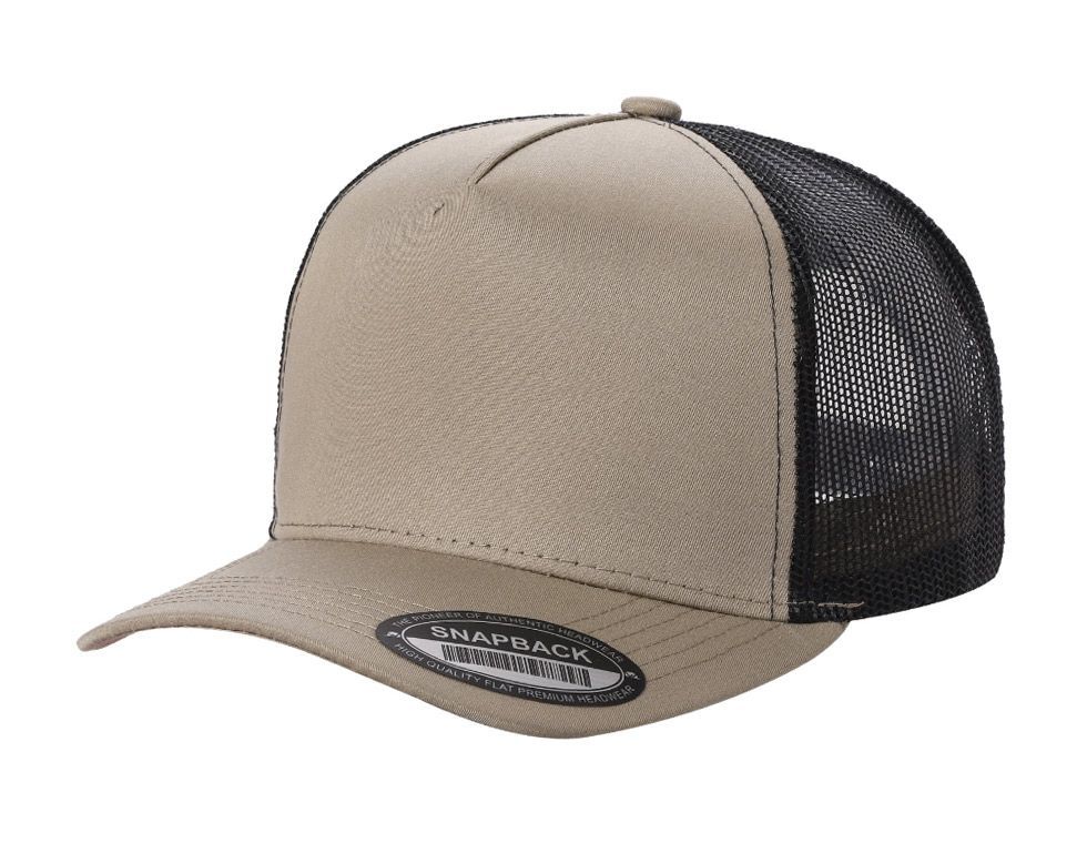 3 Bulk 5-Panel Smooth Tencel Snapback Caps With Mesh Khaki/Black