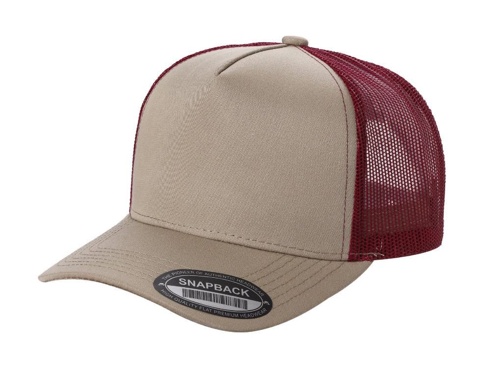 3 Bulk 5-Panel Smooth Tencel Snapback Caps With Mesh Khaki/Burgundy