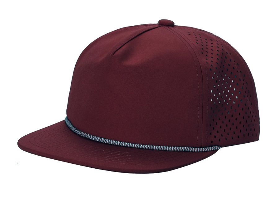 3 Bulk 5-Panel Waterproof Perforated Snapback Caps Burgundy