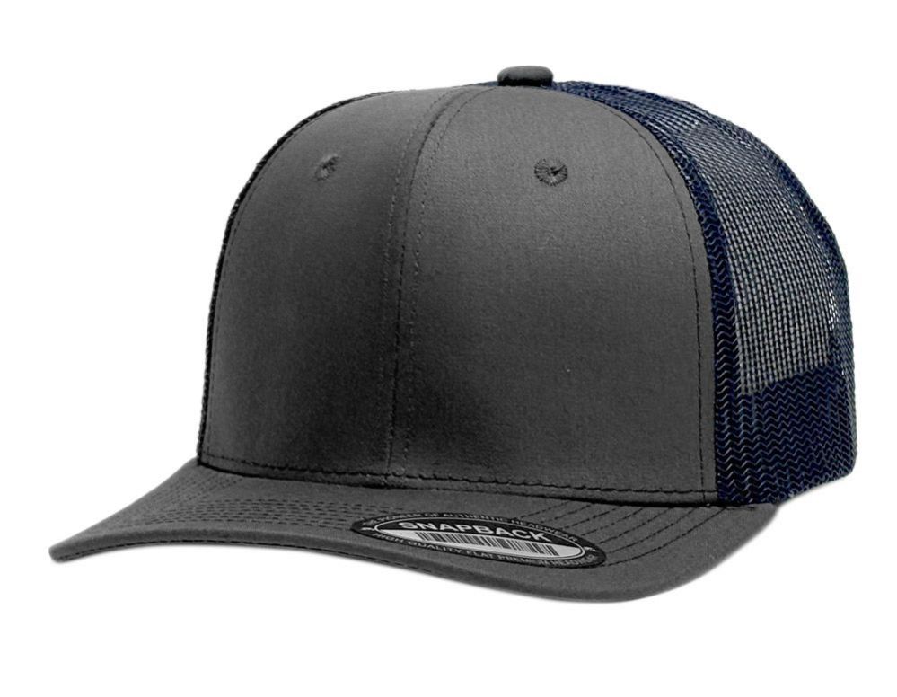 3 Bulk 6-Panel Smooth Tencel Snapback Caps With Mesh Gray/Navy