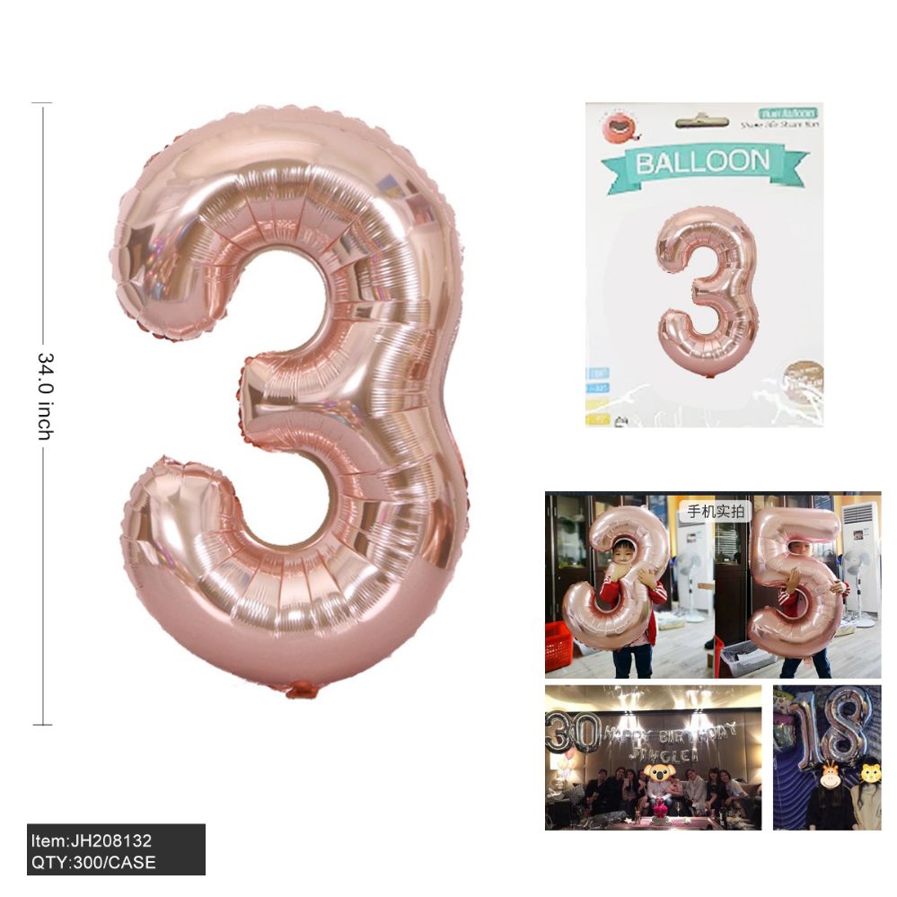 A Bulk Aluminum Balloon measures 34" and is a Pink Color Number.