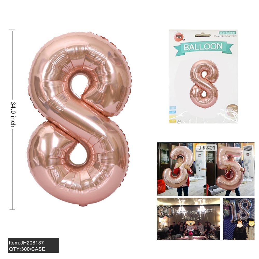 A 34" Aluminum Balloon in Pink Color shaped like the number "8".