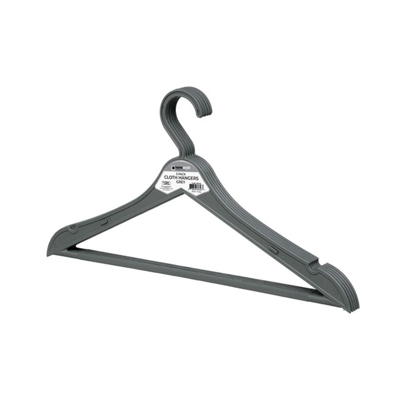 This pack of 5 grey plastic clothes hangers is a practical and stylish addition to any closet. They're perfect for hanging and organizing your clothes.