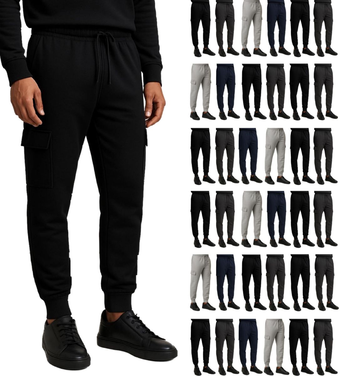 36 Bulk Mens Cotton Fleece Cargo Joggers In Assorted Colors Assorted Sizes S-2xl