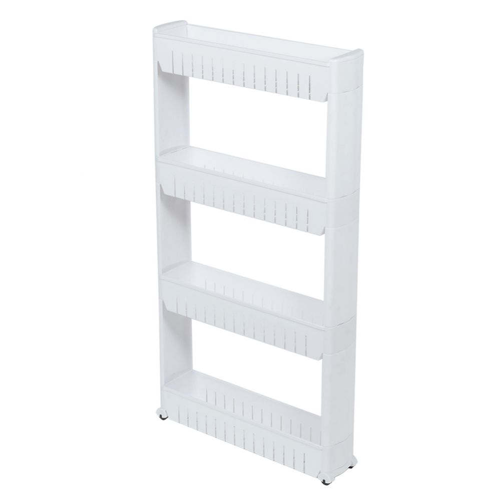 Maximize your storage space with this 4-Tier Plastic Slim Storage Tower with Wheels, designed to fit perfectly in narrow spaces in your kitchen, bathroom, laundry room, or any area that needs extra storage. Its slim and space-saving design makes it an ideal solution for tight spots, providing ample storage without taking up much floor space. Equipped with wheels, this mobile shelving unit can be easily moved from one place to another, offering convenience and flexibility in your home organization. Perfect for holding kitchen supplies, bathroom essentials, laundry items, and more, this versatile cart helps keep your space organized and clutter-free. Made from high-quality plastic, this storage tower is durable and built to last, able to withstand daily use and heavy items. Easy to assemble with no tools required, you can quickly set it up and start using it right away. Enhance your home with this practical and stylish storage solution.