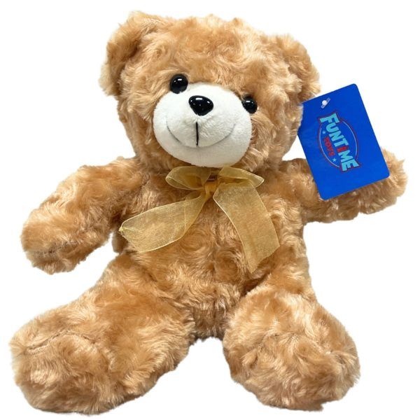 This adorable 12" plush bear from Funtime Toys features ultra-soft, fluffy fur and a sweet embroidered smile, making it a comforting companion for kids of all ages. Each bear includes a sheer matching ribbon tied at the neck and has shiny safety-style eyes that give it an extra-cute, lovable expression. Available in assorted colors including brown, pink, purple, tan and light blue, these cuddly bears are perfect for gift baskets, party favors, or everyday snuggles. Each bear comes with a branded Funtime Toys hang tag attached.,Funtime Toys 12" Plush Bear in Assorted Colors,