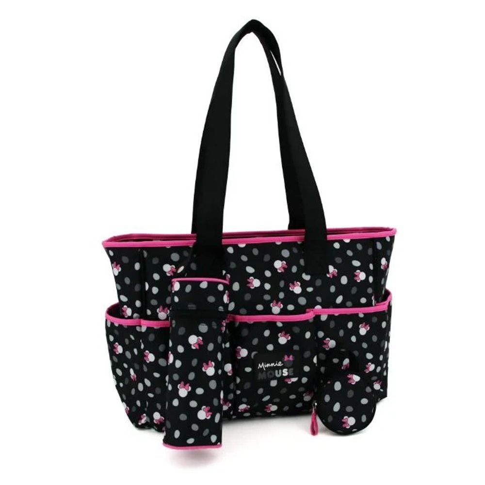 The Minnie Diaper Bag is the perfect stylish solution for carrying all your baby essential items. Featuring a classic black base with a vibrant multicolor print, this bag is crafted from high-quality, durable materials designed to withstand daily use. It includes multiple side pockets for easy organization and a reinforced handle for added strength and reliability. Lightweight and functional, this one-size bag combines convenience with a charming design, making it an ideal choice for parents on the go.