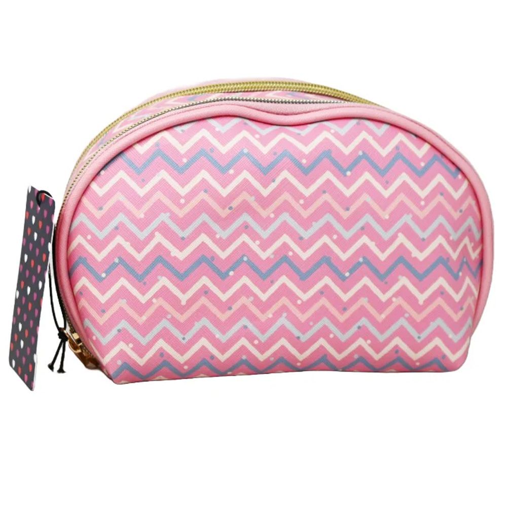 Stay organized in style with the Pink Chevron Print double Zipper Cosmetic Bag. This vibrant bag features a trendy multicolor chevron pattern on a soft pink base, perfect for any beauty enthusiast. Crafted from high quality, durable materials, it is designed to withstand daily use while remaining lightweight for easy travel. The double zipper design offers two separate compartments for superior organization of your makeup, skincare, and brushes, combining fashion with functionality in one chic accessory.
