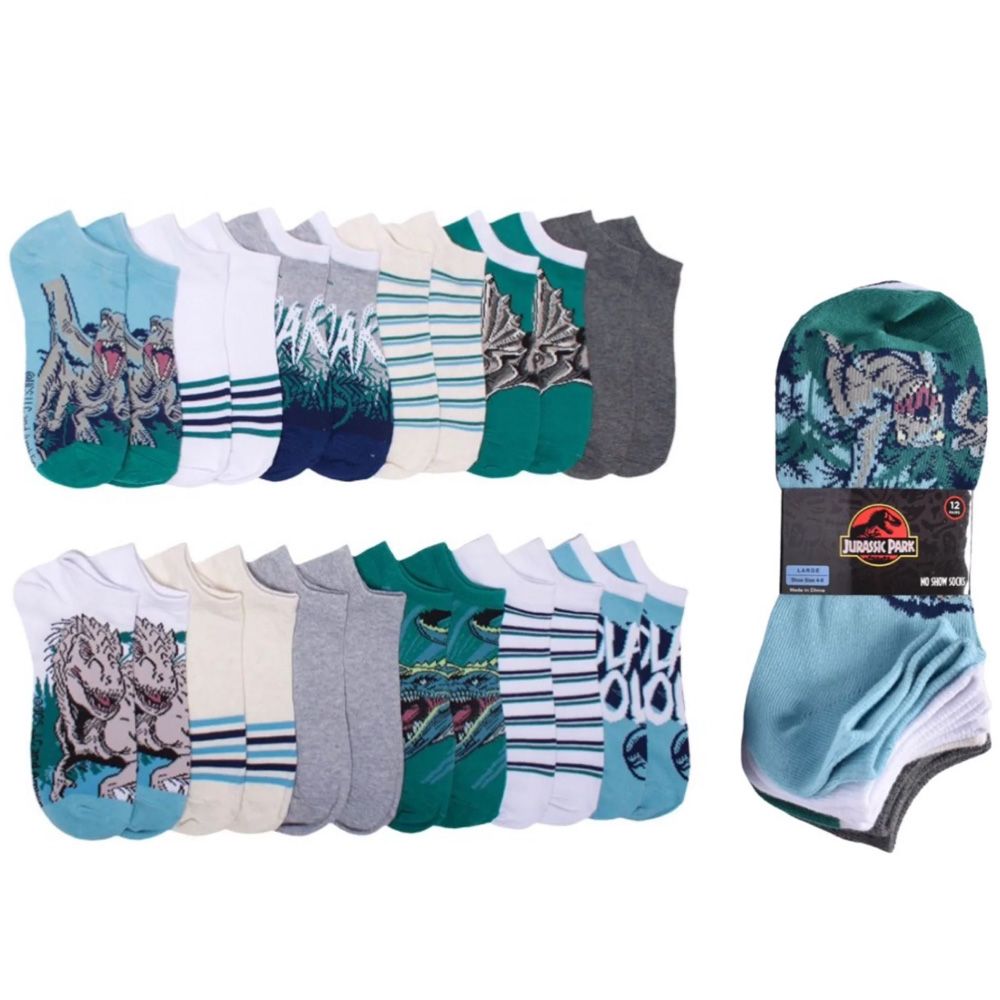 The 12pk Boys Jurassic World Roar Ns Socks Size 4-8 brings the excitement of the prehistoric era to your child's everyday wardrobe. Featuring bold graphics and "Roar" designs inspired by Jurassic World, these no-show socks come in a vibrant multicolor assortment that young dinosaur fans will love. Each pair is crafted from high-quality fabric, providing a soft and comfortable fit that remains gentle on the feet during long hours of school or play. These socks are engineered to be durable and lightweight, ensuring they can withstand active movement while staying breathable. Fully washable and easy to maintain, they come professionally carded, making them an excellent choice for organized retail storage or convenient gifting for any adventure-seeking boy.