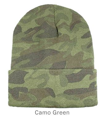 6 Bulk 12" Long Cuff Ski Beanie Camo Green