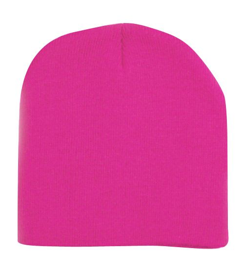 6 Bulk 8" Short Solid Color Ski Beanie Hat Hot Pink