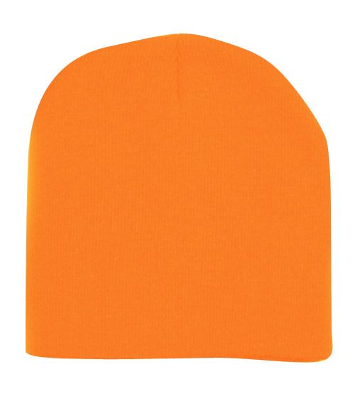 6 Bulk 8" Short Solid Color Ski Beanie Hat Orange