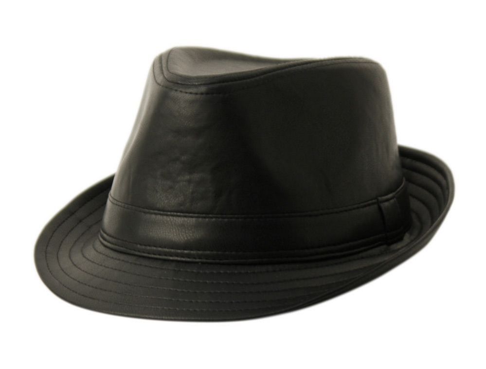 6 Bulk Faux Leather Fedora With Self Fabric Band Assorted Black