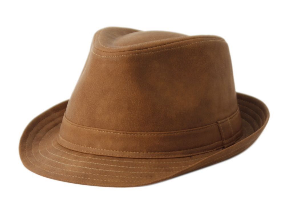 6 Bulk Faux Leather Fedora With Self Fabric Band Assorted Tan