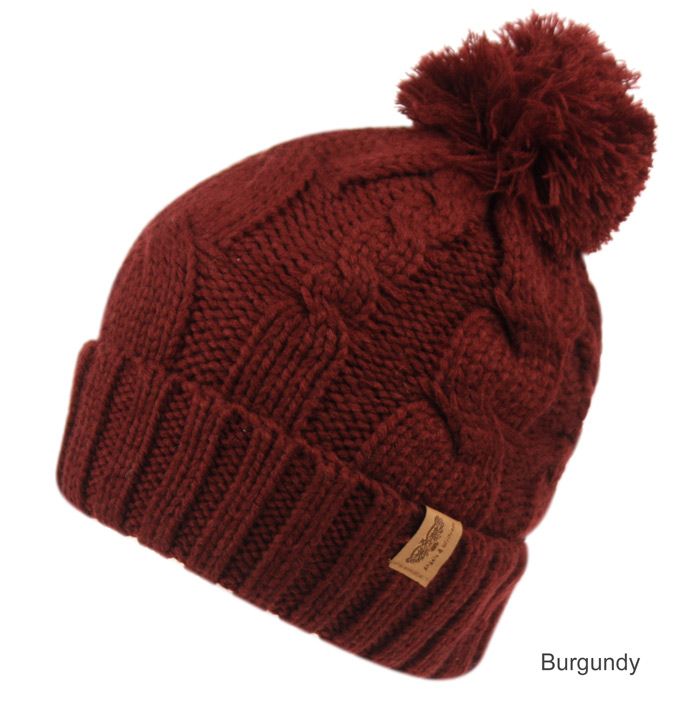 6 Bulk Heavy Knit Beanie With Pom Pom & Sherpa Lining Burgundy