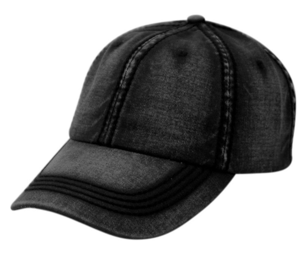 6 Bulk Heavy Stitch Washed Cotton Cap With Strapback Denim Black