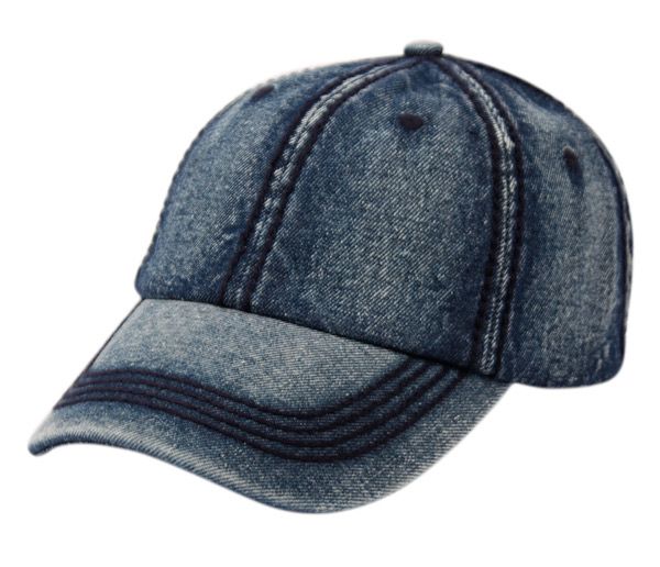 6 Bulk Heavy Stitch Washed Cotton Cap With Strapback Denim Blue