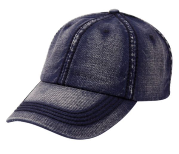 6 Bulk Heavy Stitch Washed Cotton Cap With Strapback Denim Blue
