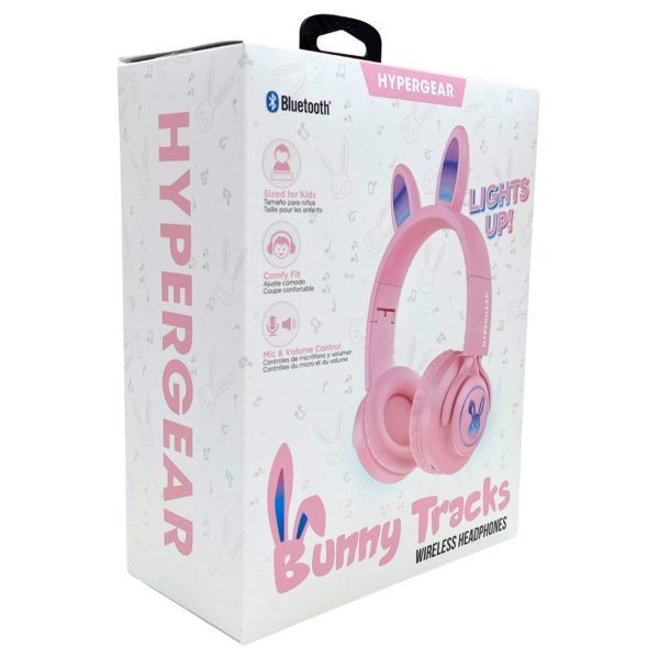 The HyperGear Pink Bluetooth Bunny Headset brings playful style and kid-friendly comfort to everyday listening with its soft cushioned ear pads, foldable design, and adorable light-up bunny ears that glow while in use, all while offering wireless Bluetooth connectivity for phones, tablets, laptops, and more. Designed for kids, it features easy-access onboard controls for power, track selection, volume, play/pause, and call management, plus a mode button to switch between audio options including Bluetooth, built-in FM radio, MicroSD card playback, and a 3.5mm aux input. The headset provides a comfy, adjustable fit with clearly marked left and right sides and delivers a fun 4-in-1 experience for music, videos, gaming, and online learning.,HyperGear Pink Bluetooth Bunny Headset,