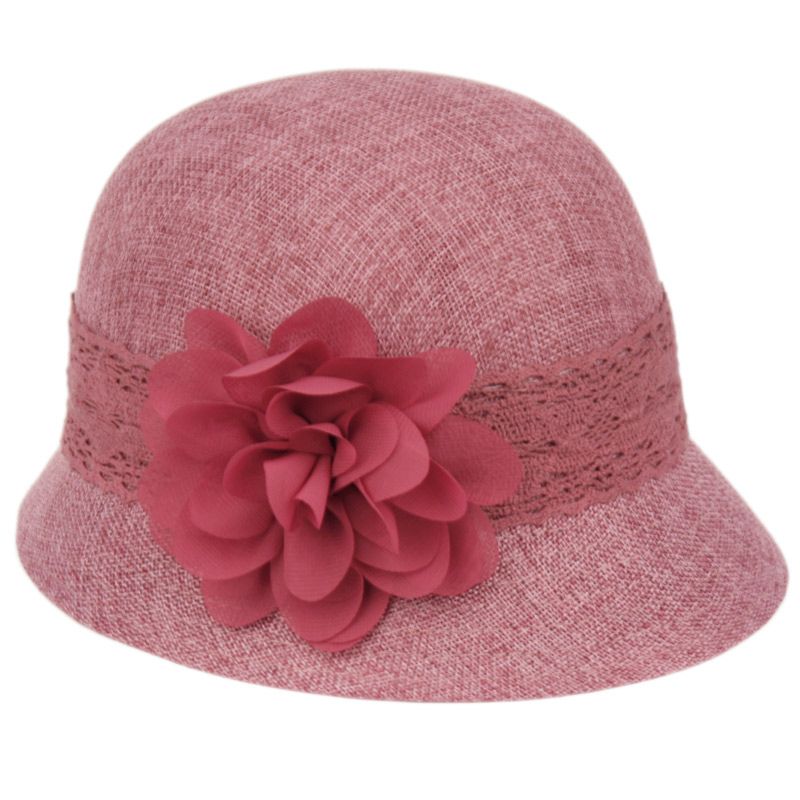 6 Bulk Linen Cloche Hats With Lace Band And Flower Plum
