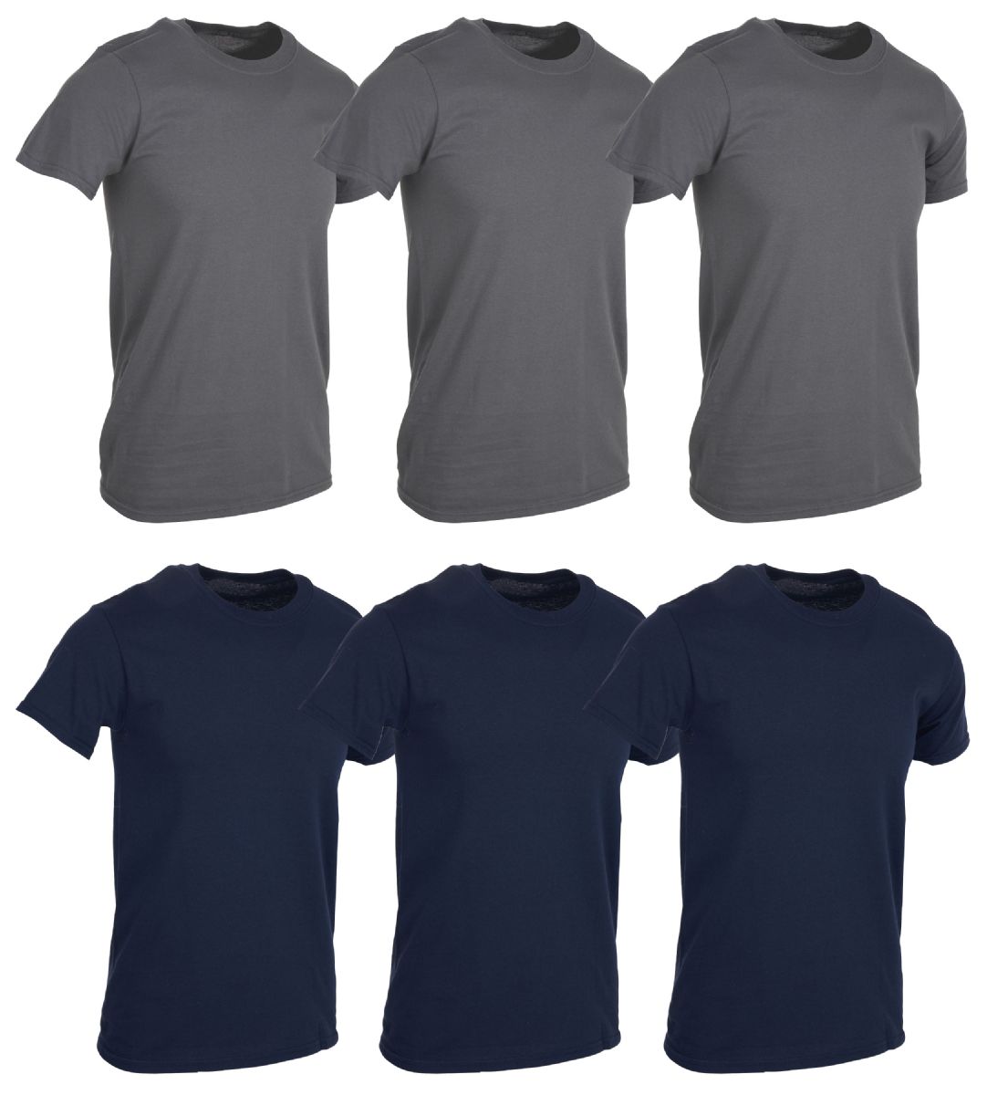 6 Bulk Men's Cotton Short Sleeve T-Shirt Size Medium - Navy And Gray