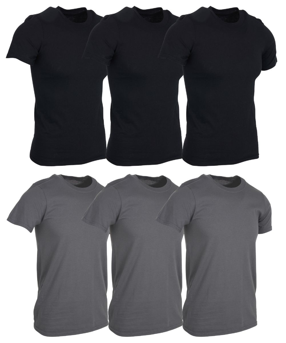 6 Bulk Men's Cotton Short Sleeve T-Shirt Size Medium - Black And Gray