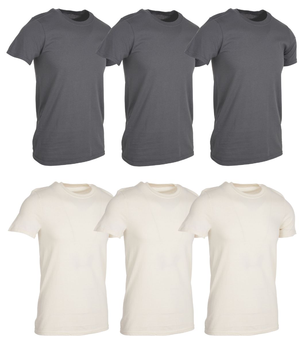 6 Bulk Men's Cotton Short Sleeve T-Shirt Size Medium - Gray And White