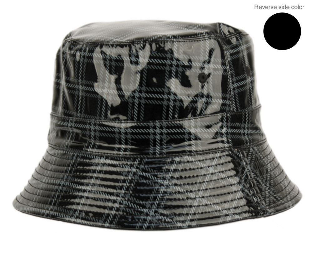 6 Bulk Packable Reversible Two Sides Bucket Hats Plaid Black
