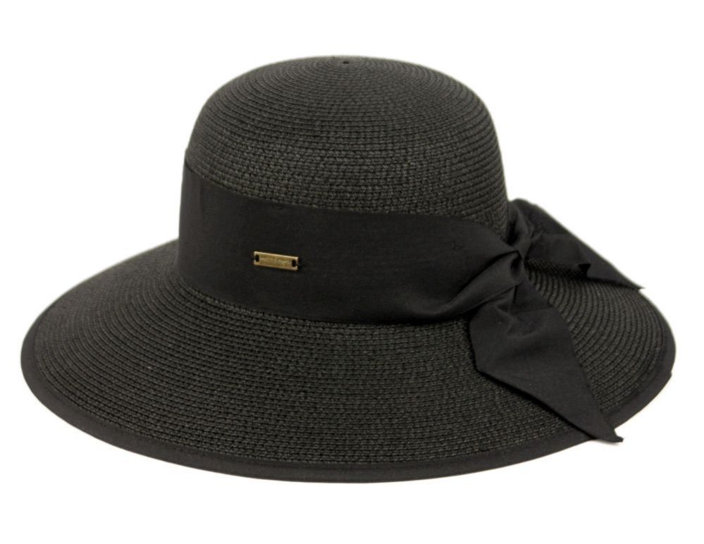 6 Bulk Paper Straw Sun Floppy Hats W/grosgrain Band & Fabric Edge Black