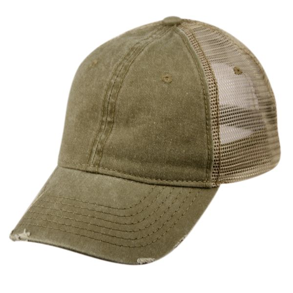 6 Bulk Pigment Dyed Washed Cotton Trucker Cap With Mesh Olive