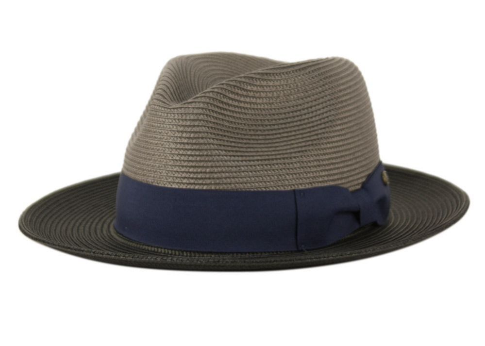 6 Bulk Poly Braid Two Tone Fedora Hats With Contrast Band Gray/Black