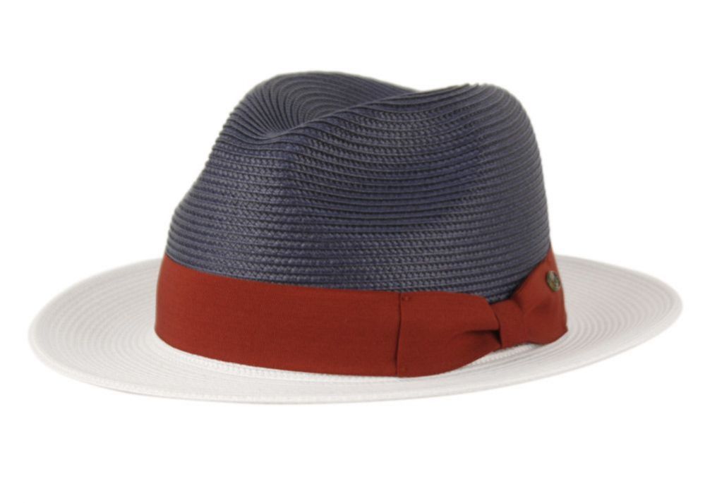 6 Bulk Poly Braid Two Tone Fedora Hats With Contrast Band Navy/White