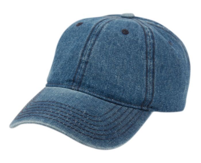 6 Bulk Ponytail Washed Cotton Baseball Cap Denim Blue