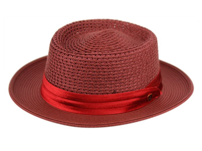 6 Bulk Richman Brothers Polybraid Hats With Pleat Silk Band Assorted Burgundy