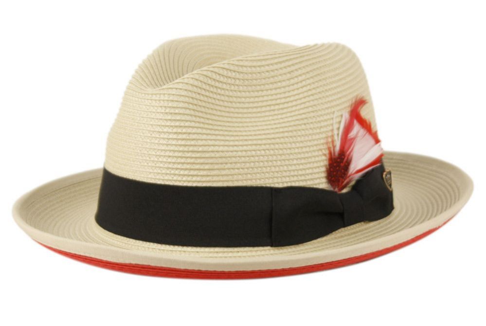 richman brothers polybraid two tone fedora hats with grosgrain band and feather