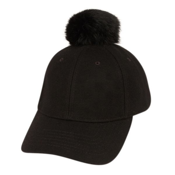 six panel solid color wool blend with real rabbit fur pom pom caps