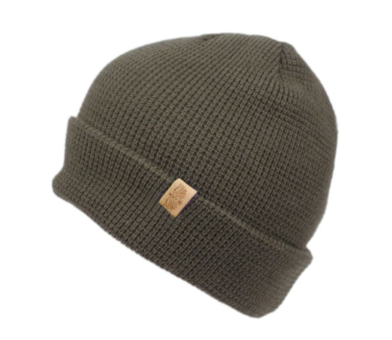 6 Bulk Solid Color Waffle Knit Cuff Beanie Olive