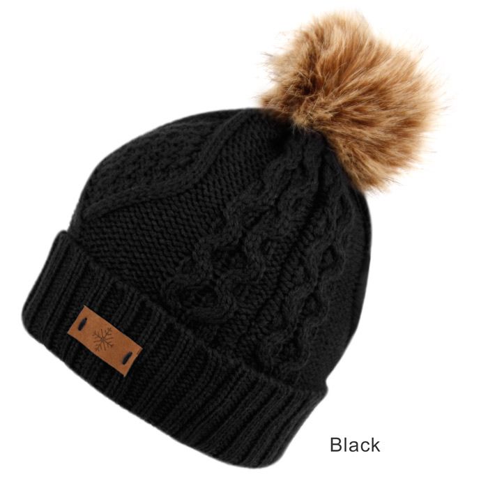 solid & multi color knit beanie with pom pom and warm fleece lining