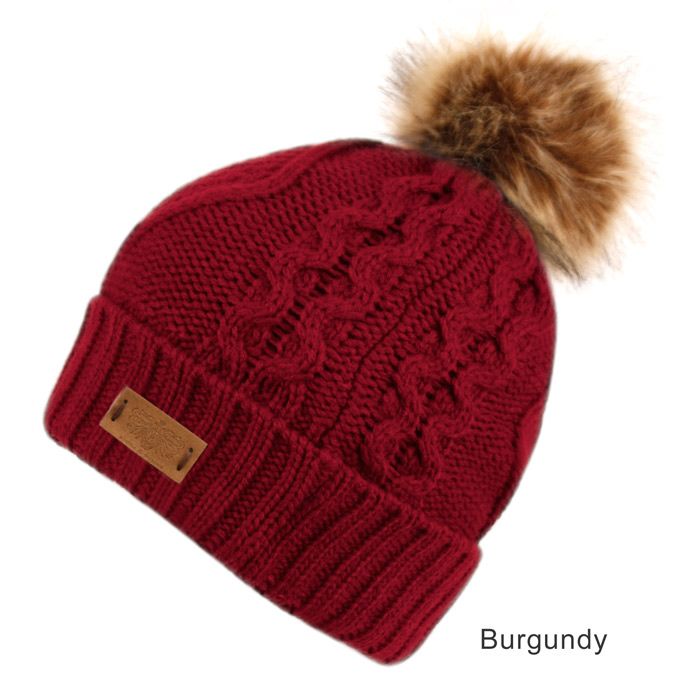 6 Bulk Solid & Multi Color Knit Beanie Hat With Pom Pom Burgundy