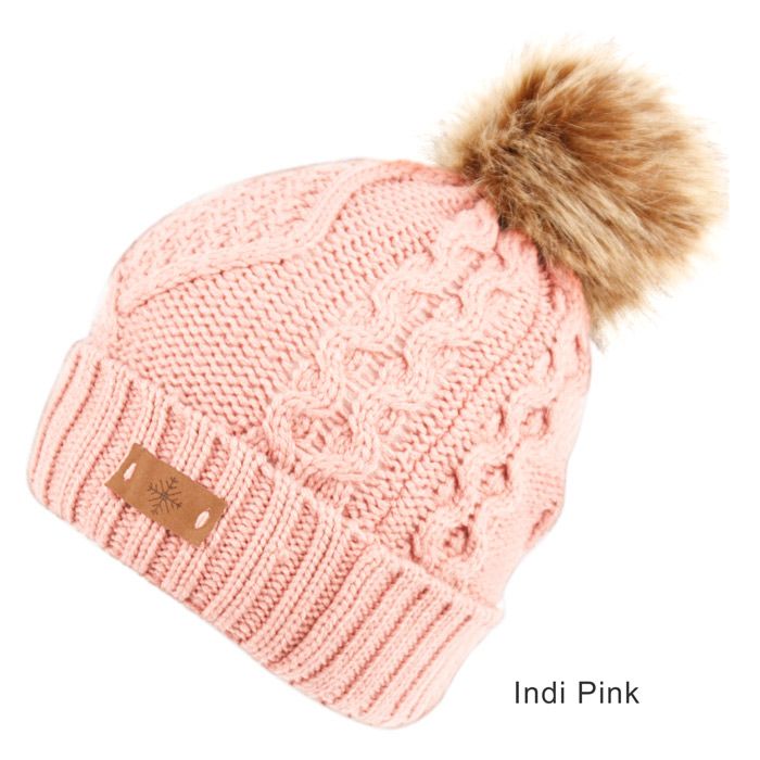 6 Bulk Solid & Multi Color Knit Beanie Hat With Pom Pom Indi Pink