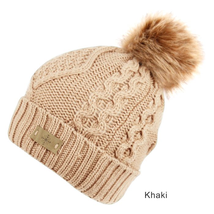 6 Bulk Solid & Multi Color Knit Beanie Hat With Pom Pom Khaki